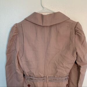 Good condition, minor wear. Marc Jacobs. Blazer. Hook and eye closure. Pockets. Puff shoulders. Buttons in back. Lined. Blush pink color. Size 4. 100% wool. Pit to pit laying flat 17.5” Shoulder to hem 20” Sleeve (pit to hem) 16”. All measurements are approximate and taken lying flat. Smoke free home. No trades, offers welcome.