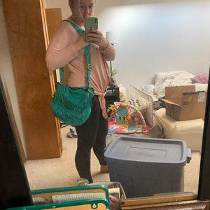 Great condition! This cute little bag is perfect for outings. Great in the rain or outdoors (I never took it out in the rain but the material is nice!). It has the short straps plus the long straps. Super cute.