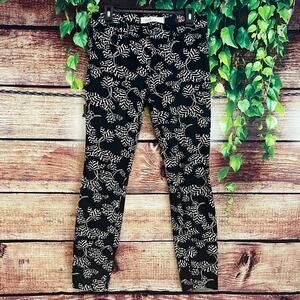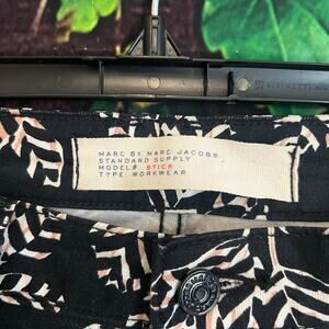 Marc Jacobs Workwear Pants 4/27 Stick Mid Rise Straight Leg Black Multi Rae Rae Floral Palm Leaf Skinny