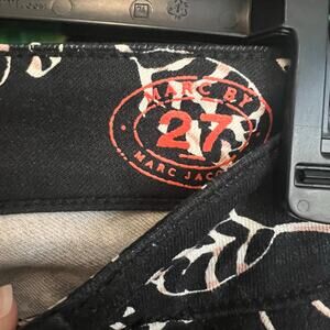 Marc Jacobs Workwear Pants 4/27 Stick Mid Rise Skinny Leg Black Floral Black