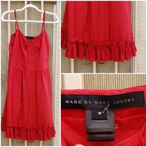 🌴Description: Wide inset waist lends a figure-flattering effect to a silky jacquard red dress with an easy, ruffle-trimmed skirt., Like new no flaws ...