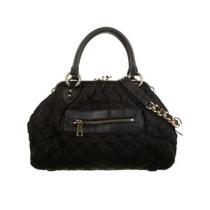 Marc Jacobs black Nylon With Leather Trim quilted Stam Satchel Shoulder Bag
