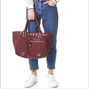 Marc Jacobs studded canvas tote bag, burgundy, used a few times, great condition