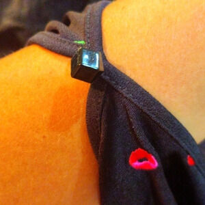 Black with hit pink and neon green embroidery dots, slit arms with rhombus buttons. A line cut skater dress. Worn twice.