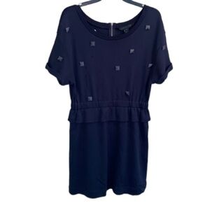 Marc Jacobs dress navy cotton ruffled waist cuffed sleeve small embellished