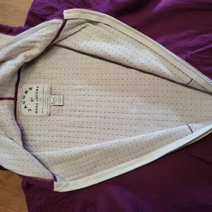 22" armpit to armpit. 21" across waist. 19" across bottom of garment. 27" long down center back. 21" sleeves from shoulder to cuff. Kind of a "waffly" fabric. Please see close up picture. Excellent condition. Very soft.