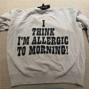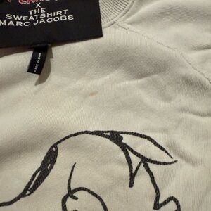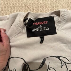 Adorable collaboration with Peanuts cartoon sweatshirt with distressed details (this is the design not wear can be seen in photos around collar and on side.)