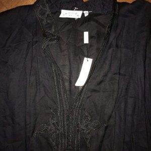 Marc Jacobs embroidered boho style tunic maxi gown size x large embroidered pattern bell sleeves bottom front and side slits panels approx 56 inches long approx 19 inches across under arm this is a stunning gown boho style bell sleeves v neck made with out care tag sample dress from Marc Jacobs (the stock photo is not the same tunic as mine but similar) silk like Cotton.