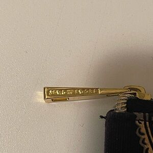 Cute fabric bag with a gold bow. Front with logo signature