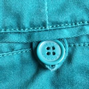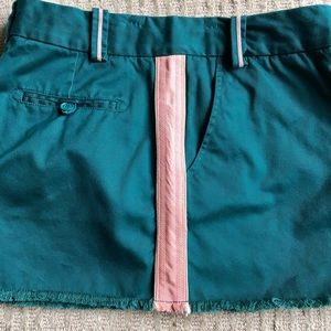 Teal and light pink skirt. Trendy frayed bottom. Never worn, has indentations from hanger clip which would definitely go away with a wash or iron.
