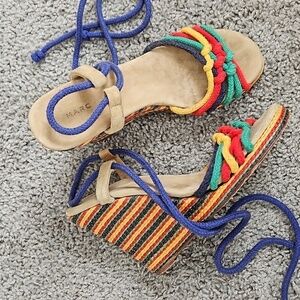 Marc Jacobs multicolor rope ankle tie wedge sandals.