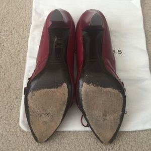 worn • size 38.5 • heel is approx. 3" • burgundy • there are some visible scratches and scuffs (see pics attached) • comes with original box and dust bag • 🚫 trades • comes from 🚫 smoking home
