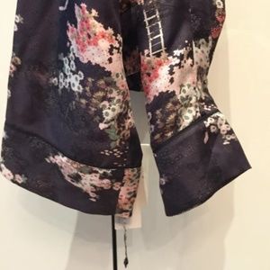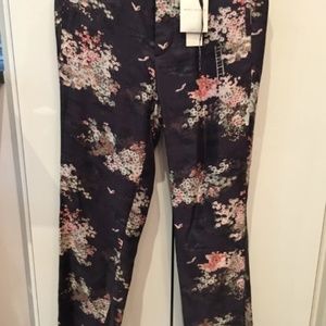 Silk floral pants, pockets, detailed cuffs, button fly, a little bit of elastic on the sides, with waist-tie in case want to tie tighter. Really impressive detailing - seemingly Chinese floral inspired, look at the pictures for better idea. Originally retailed for $870 before tax. Let me know if you have any questions