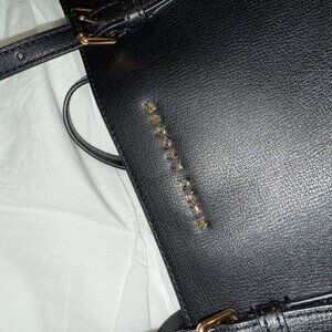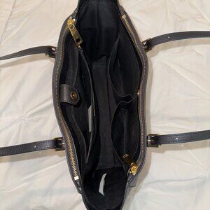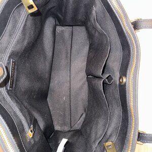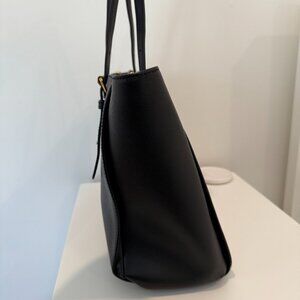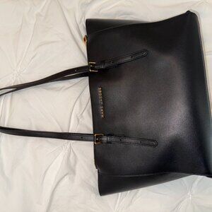 Marc Jacobs black tote bag with gold hardware accents and soft leather-like material