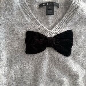 Marc Jacobs velvet bow sweater, size L (but fits like an xs/ small), grey sweater with black velvet bow