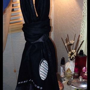 Marc Jacobs scarf. Fabric is incredibly soft made of wool and cashmere. Metallic trim and Marc Jacobs lettering at bottom. Keep your neck fashionably warm in this lovely scarf. Msrp $69.99