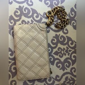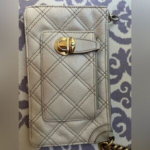 Marc Jacobs wristlet clutch, cream quilted leather with gold tone chain