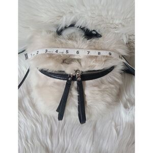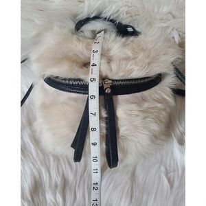 • Trendy, genuine pebbled leather and shearling fur canteen crossbody bag with an adjustable strap.