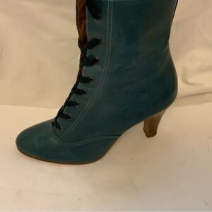 Marc Jacobs Green Lace-Up Ankle Boots Corset Lace 36.5 US 6.5 made in Italy