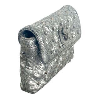 Marc Jacobs Quilted Leather Snakeskin Animal Print Embossed Studded Silver Bag
