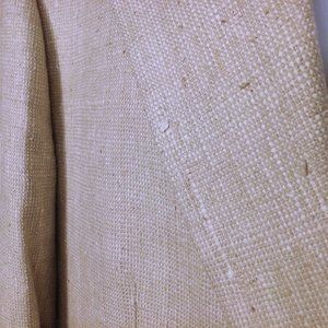 Vintage 80s-90s Marc Jeffries made in Korea Blazer, men's 48 (medium/Large), Lined Fitted Tailored, 100% Pure Silk, six Pockets, textured woven pattern with natural slubs, double-button closure, Buttons cuff, Dry Clean in shades of cream/tan. In pre-owned* condition with no outwardly visible flaws - tiny fray hole at left hip, many natural slubs -see pics. Silk Woven Tweed Chic Classic Country Vanity Fair On Trend Preppy Academia Career Casual Summer Fall Spring Runway
