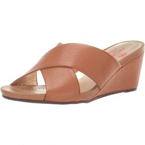 Marc Joseph Brown Leather Beach Slip On Mule Wedge Sansals Open toe Heeled Pull On Pumps
