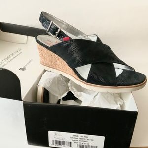 Marc Joseph Myrtle Black Leather Glaze Slingbacks Wedge Sandals