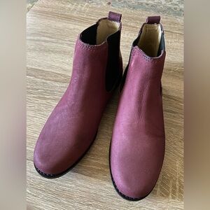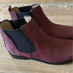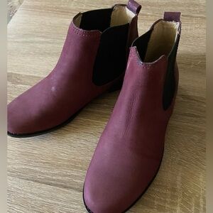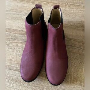 This is a pair of red/maroon ankle boots. Child Size 13.5. Leather upper and leather lining. These are new with no tags or box.