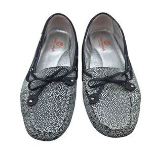 Marc Joseph Pebbled Flats Cypress Hill Tie Black White Leather Brazil Womens 8