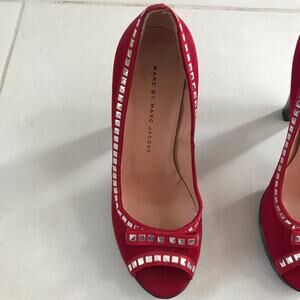 Marc Marc Jacobs Suede Bow Open Toe Studded Heels