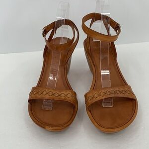 Marc Modavi wedge platform ankle wrap leather sandal shoe brown women 40 9