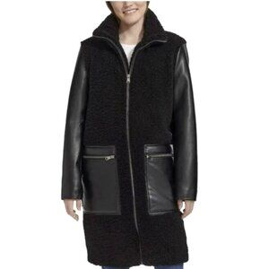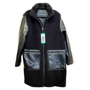 Marc NY Andrew Marc Sz XL Black Coat Tunis Faux Sherpa Midi Jacket NWT