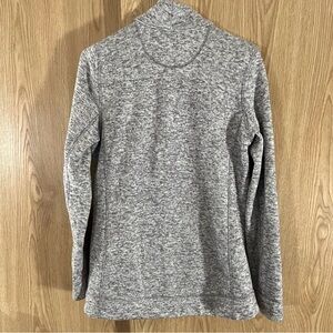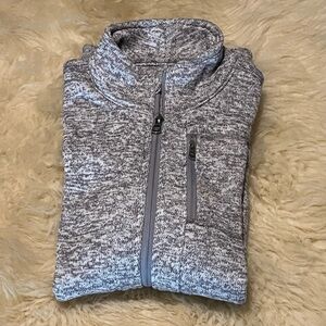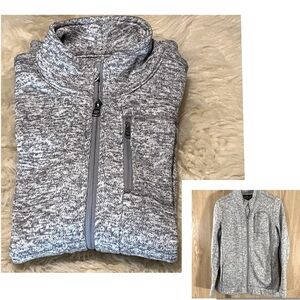 This beautiful sweater jacket is in great condition. It is light gray, soft knit and fleece lining, full zip closure, side pockets and upper pocket.