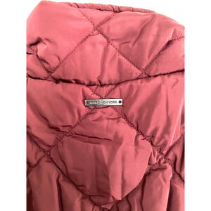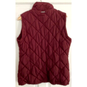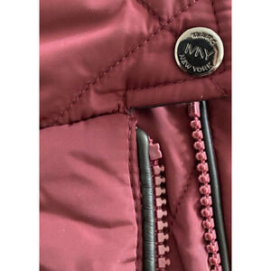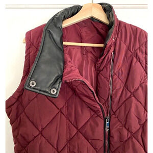 Stay cozy and stylish this winter season with the Marc NY maroon puffer vest with Faux black leather collar. Made with durable polyester material, this vest is perfect for layering over your favorite winter outfits. It features a quilted design and is lined with comfortable polyester material to keep you warm during colder days. The vest is available in size L and is perfect for women who want to stay fashionable and comfortable. The stylish maroon color adds a pop of color to any outfit, and the vest's brand, Marc, ensures that you are getting a high-quality product. This vest is a must-have for any winter wardrobe and can be worn for any occasion.