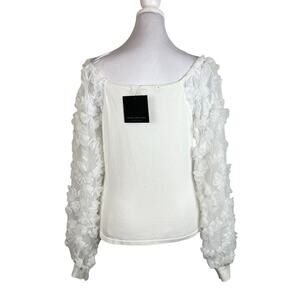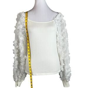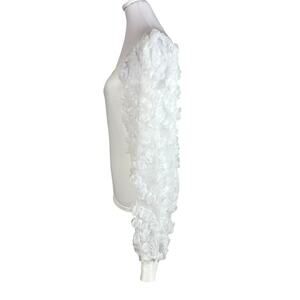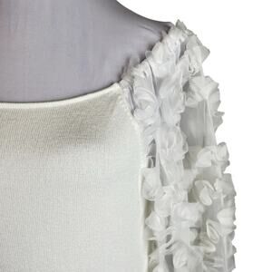 🆕 Marc NY Top Womens Size M White Knit w Tulle Pouf Ruffle Sleeves Romantic NWT