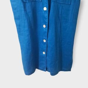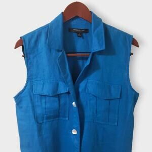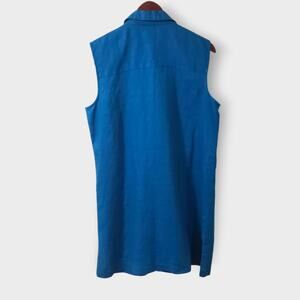 Marc New York 100% Linen Sleeveless Button Front Tunic Top Blue Sz Small Pockets