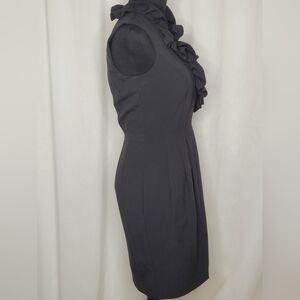 Marc New York Andrew Marc Black Fitted Waist Ruffled Neckline Dress - Size 2