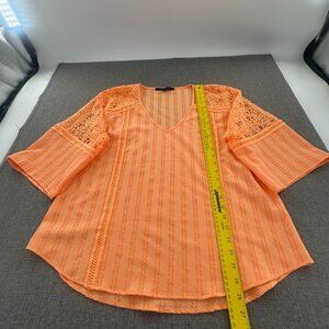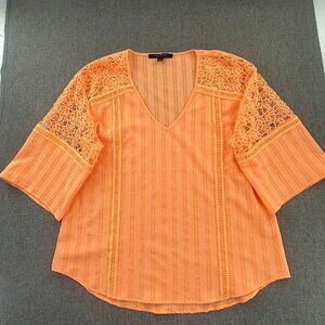 Marc New York Andrew Marc Blouse Orange Large V-Neck Beautiful Crochet Detail
