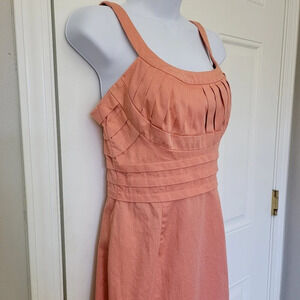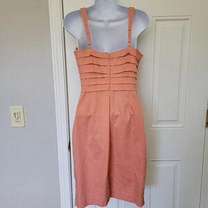 Marc New York Andrew Marc Coral Orange Ruched Sleeveless Dress Zip Back Size 2