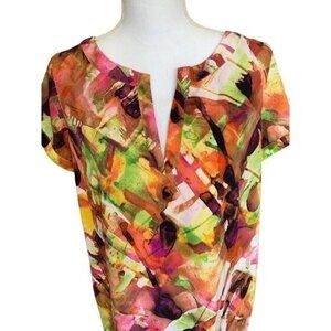 Marc New York Andrew Marc Dress Size 12 Multicolor Short Sleeve V-Neck