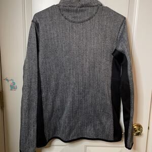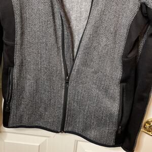 Herringbone print all over gray and black zips up and pockets polyester Sweater-knit exterior