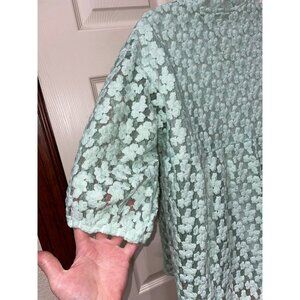 Marc New York Andrew Marc Mint Green Floral Lace Blouse XS Ruffle Collar Sheer P