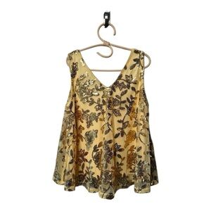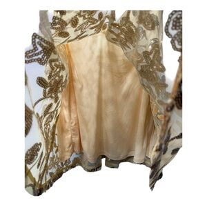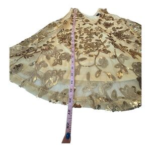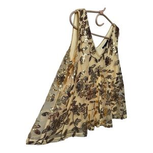Marc New York Andrew Marc Sleeveless Gold sequins with knit lining sheer overlay with floral design Lined Top Blouse Lining is a yellow color with Golden sequins . A Line Swingy fit with overlay
