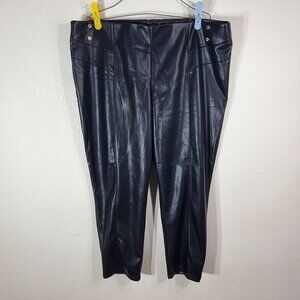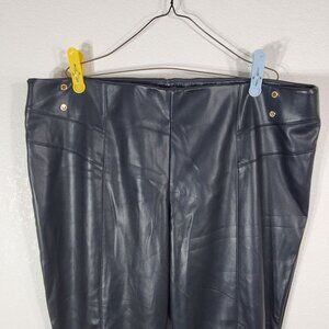 Marc New York Andrew Marc Womens 3X Shiny Black Faux Leather Pants Control Waist