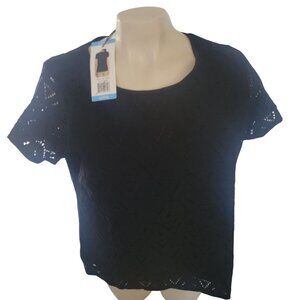 Marc New York Black Eyelet Short-Sleeve Top Womens Large Lightweight Stylish