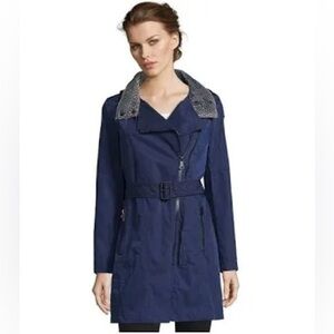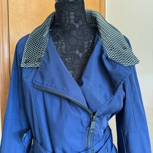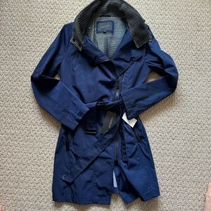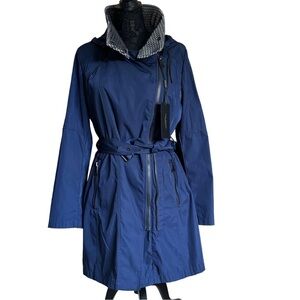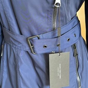 Marc New York Blue Urban Hooded Belted Zipper Trench Rain Coat Size Large