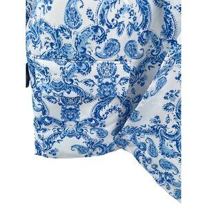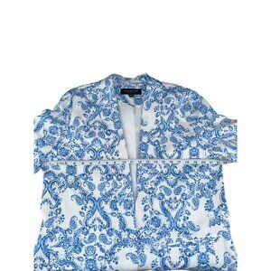 Stylish blue and white patterned jacket. Perfect for any occasion. Comfortable and chic design.
