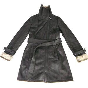 Marc New York By Andrew Marc Womens Brave Heart Belted Faux-Shearling Coat S