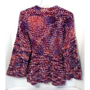 Marc New York Cardigan Sweater Wn M Burgundy Colorful Shag Artsy Oversized 70s