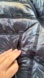 Chic dark puffer vest by Marc New York. Ideal for layering in cooler weather. 100% polyester fill, 100% fabric in lining and body of vest. Machine wash cold separately inside out. Very attractive with ribbons stitched at each baffle in a Chevron pattern. Very figure flattering.